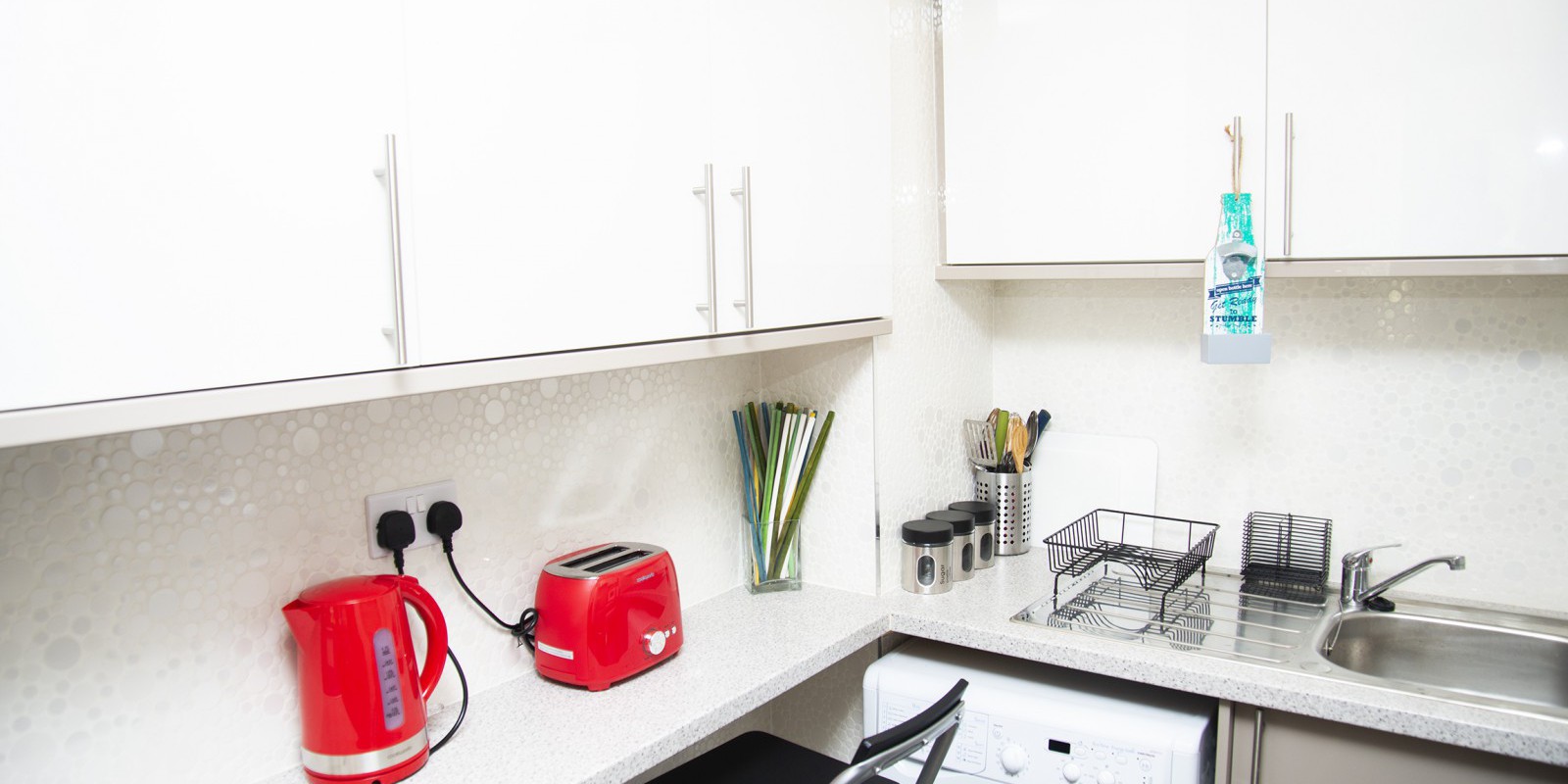 The accommodation has a flat-screen TV. There is also a kitchen, equipped with an oven. A microwave, a toaster and fridge as well as a kettle for a British cup of tea.